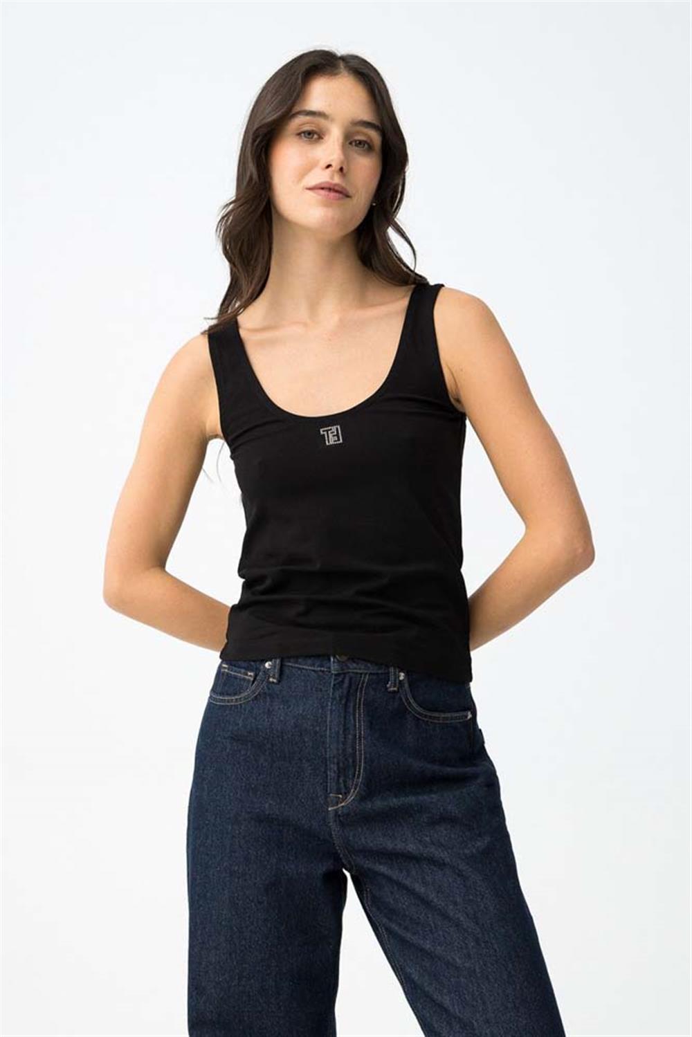Tiffosi SANTI – Top canotta con logo in strass